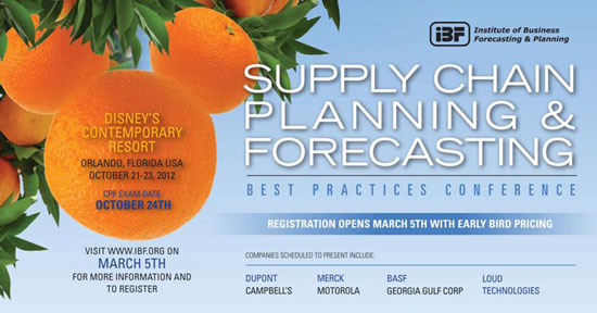 Near the end of the day I spent some time with the guys from Forecast Pro (our statistical Forecasting software provider). They answered a few questions I had and agreed to set up a conference call in the next couple of weeks to get all parties on my team up to date. This IBF conference proved to be an excellent outlet for me to network and catch up with colleagues in addition to the lessons I was able to bring home.