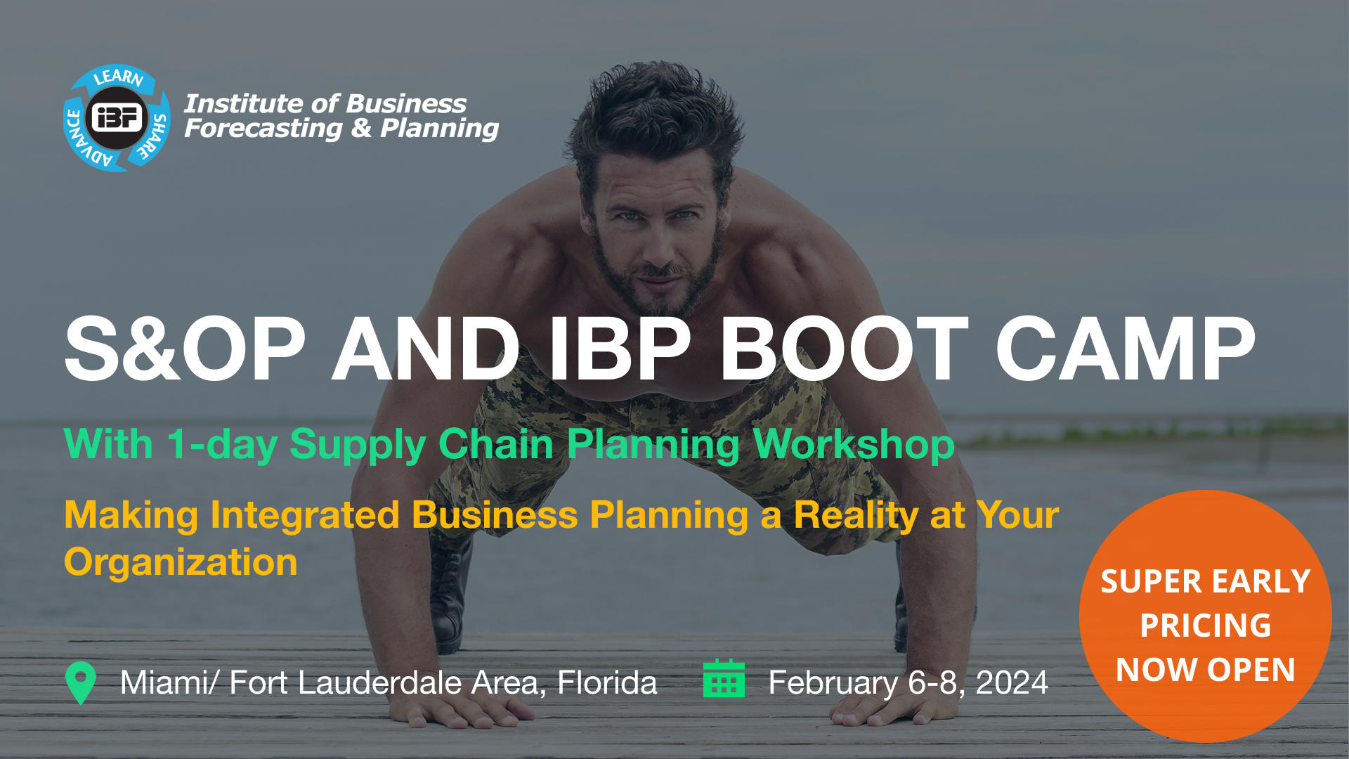 To get up to speed with the fundamentals of S&OP and IBP, join IBF for our 2- or 3-day Boot Camp in Miami, from Feb 6-8. You’ll receive training in best practices from leading experts, designed to make these processes a reality in your organization. Super Early Bird Pricing is open now. Details and registration.