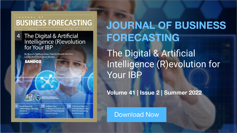 This article originally appeared in the Summer 2022 issue of the Journal of Business Forecasting. To receive a print copy of the Journal every quarter, become an IBF member or subscribe.