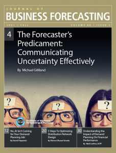 This article originally appeared in the Spring 2021 issue of The Journal of Business Forecasting. Become an IBF member and get the Journal delivered to your door quarterly, plus discounted entry to IBF conferences and events, members only tutorials and workshops, access to the entire IBF knowledge library and more. Get your membership.