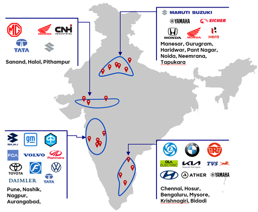 Where key Indian and international manufacturers base their Indian operations