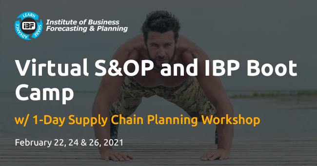 To Make S&OP a reality in your organization, attend IBF’s Virtual S&OP/IBP Boot Camp (with 1-day Supply Planning Workshop) on February 22, 24 and 26. You’ll learn from renowned leaders how to establish or improve your S&OP process and truly integrate demand and supply and improve key KPIs like cash flow, revenue, forecast accuracy, inventory turns, and more.