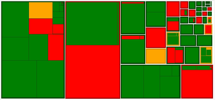 In this example the large tiles show Product Groups and the smaller tiles are the SKUs within them. The size of each tile indicates the amount of avoidable error and the colour whether this level of error is statistically significant. The largest red tiles represent the biggest improvement opportunities