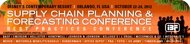 See us share more on this topic at IBF’s Supply Chain Planning & Forecasting: Best Practices Conference in Orlando on October 22-24, 2012. We’re speaking at the IBF event!